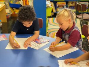 The Kindergarten Program is for children five years old on or before August 31. The classroom is organized into learning centers designed to develop a love of learning. Time and space are organized to encourage active exploration, self-directed play, and freedom of choice at various learning centers, as well as to provide teacher-directed and structured group activities.