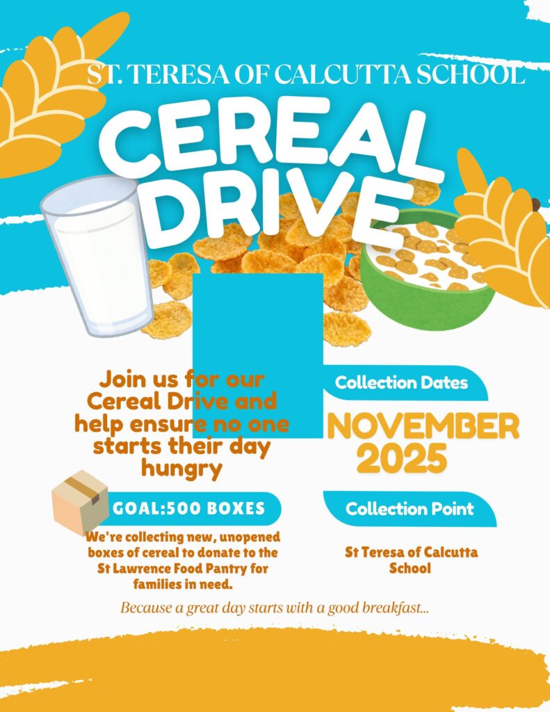 During the Month of November St. Teresa of Calcutta School has been challenged to bring the most cereal boxes. Can we do it?
