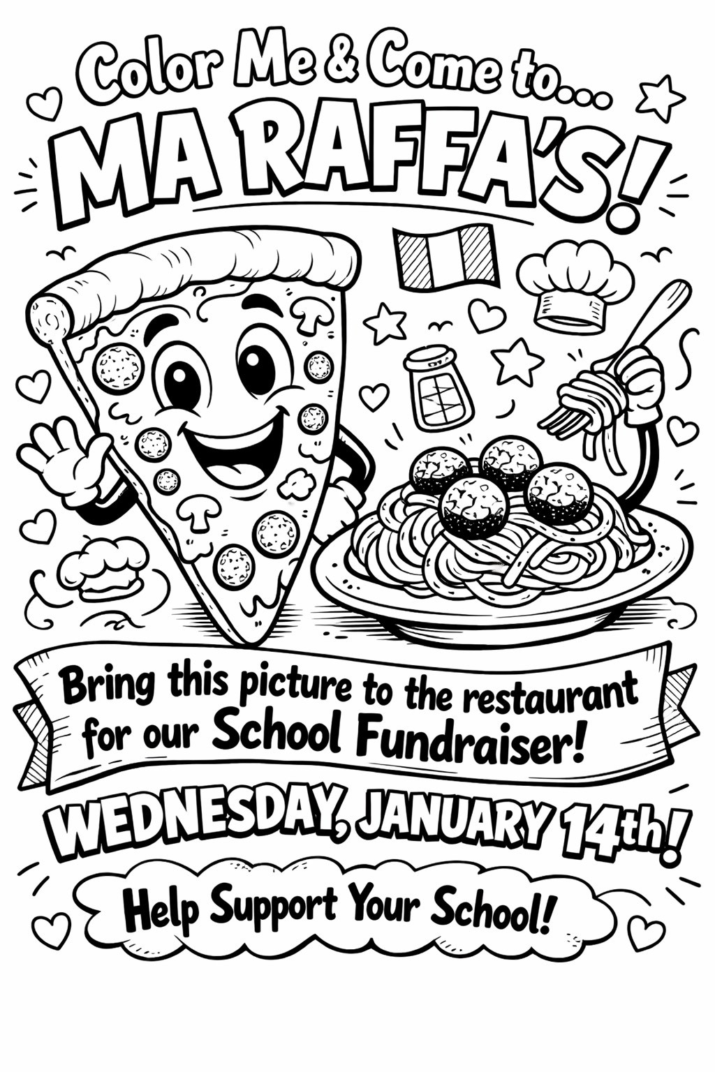 MaRaffa’s has invited all students to color this attached flyer and bring it in the night of our fundraiser. All pictures will be hung in the restaurant.